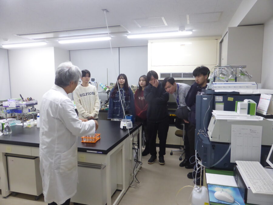 講義後にラボの見学を実施し、7月7日は実験動物としてのカイコの利用状況、11月10日は物質の分析装置(HPLC)の利用方法について勉強してもらいました。